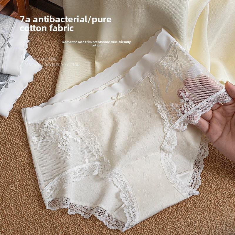Damen Frühling und Sommer Reine Baumwolle Spitze Mesh Nahtlos Atmungsaktiv 7A Antibakterieller Baumwollzwickel Hüftbund Dreiecksslip