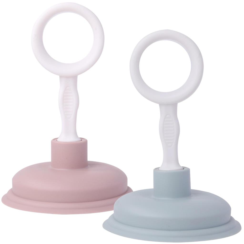 Rubonarie Mini Drain Plunger, Kitchen, Bathroom, Soft-shelled Drain, Cleans Drains, Unclogging Toilets, Set of 2 (Pink and Blue)