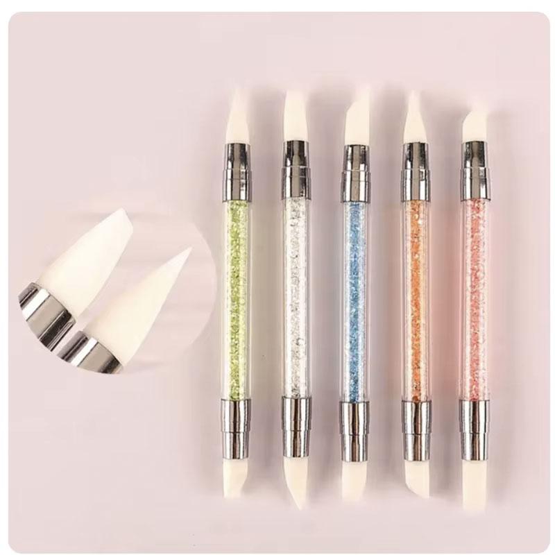 5Pcs/Set Sculpture Dotting Pen Nail Art Silicone Brush Colorful Crystal Dual-head Carving Flower Painting Pen DIY Manicure Tools