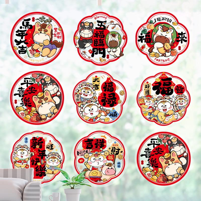 10 Stück Statische Glasfensteraufkleber für das neue Jahr des Pferdes - Festliche Fensterdekorationen für das neue Jahr