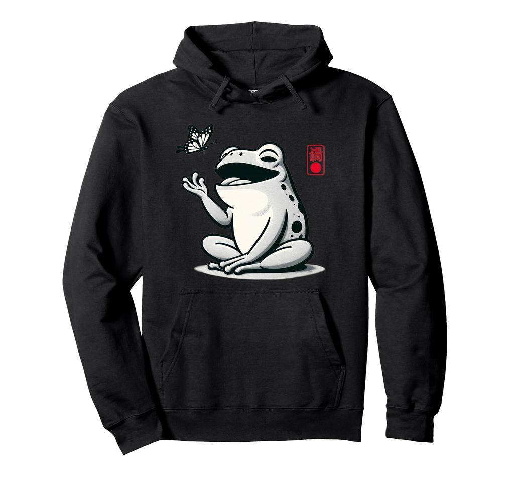 Experience a moment of tranquility with this design depicting a delightful frog reaching for a gentle butterfly. This gentle interaction reflects Cottagecore & Japanese aesthetic's emphasis on rural charm and simplicity.