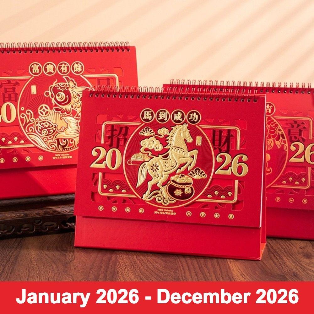 New Year festive Red 2026 Desktop Desk Calendar Standing Desktop Paper Calendar Table Decorations