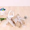 7 * 7 Zoll Vintage Jute Spitze Schleife Ringträgerkissen und Rustikales Hochzeits Blumenmädchen Körbchen Set