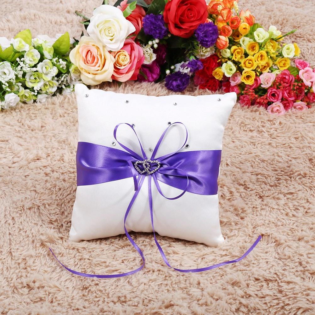 Ehering-Trägerkissen mit Schleife Satin Doppelherzen Diamanten (lila)