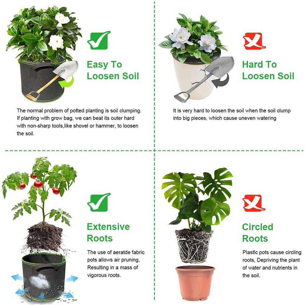 HOCHWERTIGES MATERIAL: Aus Vliesstoff gefertigt, langlebig, verschleißfest, keine Sorge um zerbrochene Töpfe, leicht zu reinigen, wiederverwendbar, fördert gesundes Pflanzenwachstum und steigert den Ertrag.