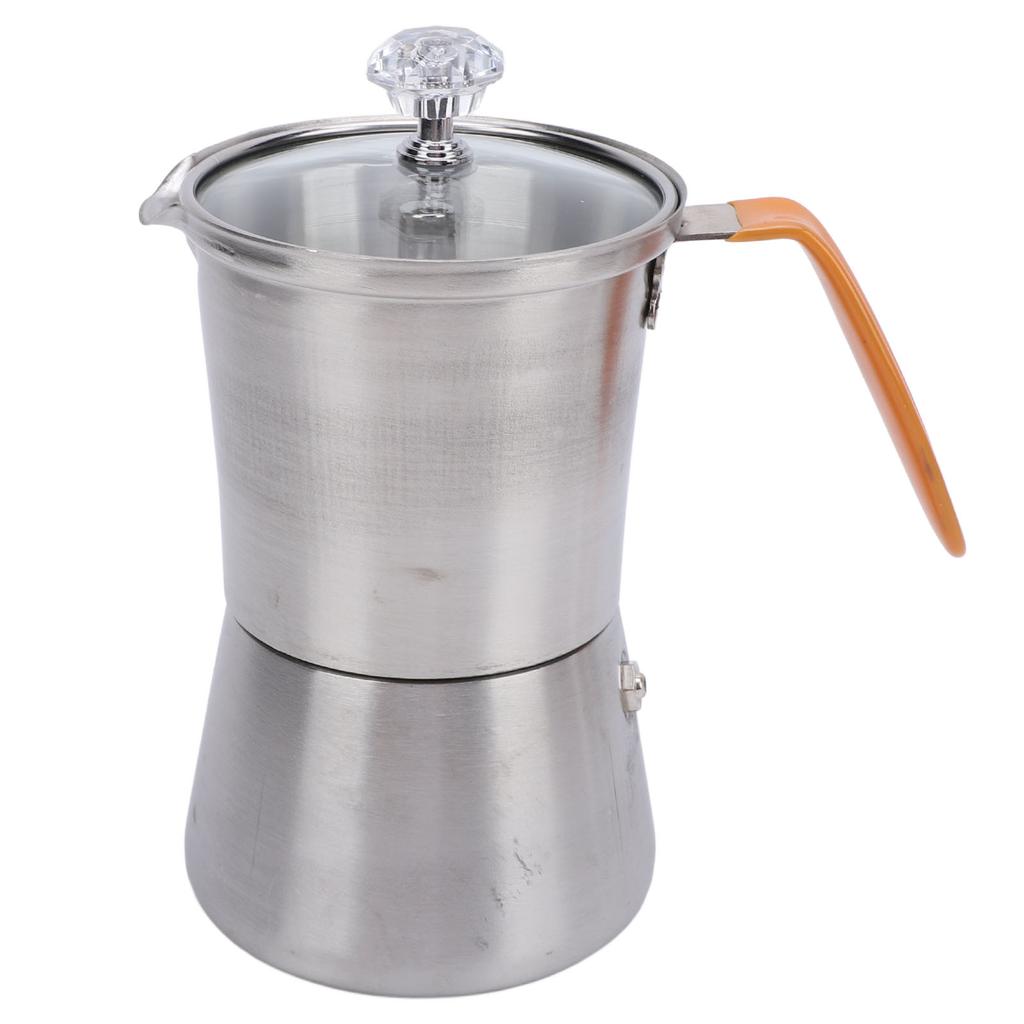 Tragbare Kaffeekanne aus Edelstahl zum Aufgießen mit Glasdeckel und hitzebeständigem Griff für italienischen Kaffee, Milch, Tee 160 ml
