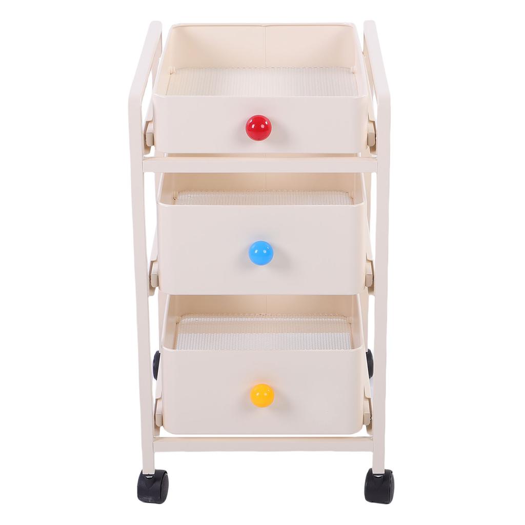 Storage Cart Milky White 3 Tier Metal Rolling Organizer with 360 degrees Rotating Quiet Wheels for Kitchen Bathroom