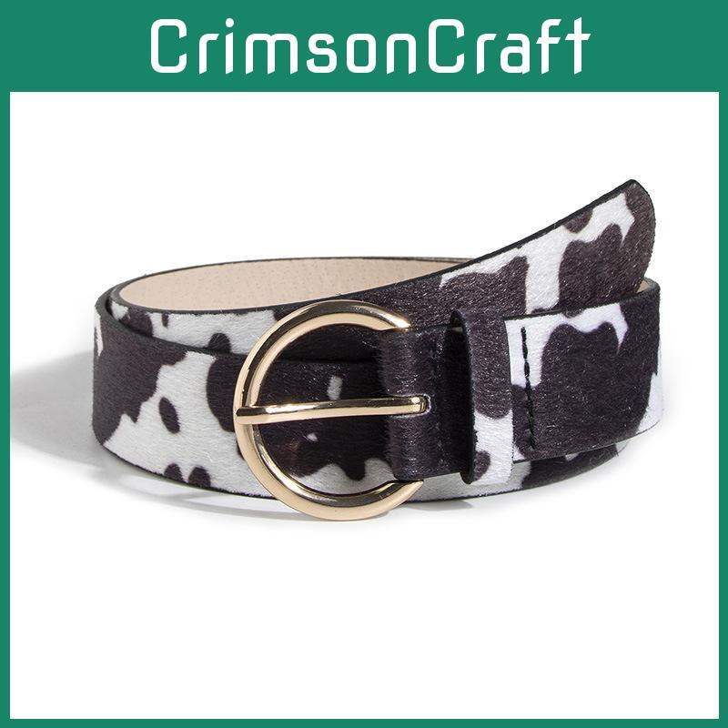 This fashion belt features a vintage cow print pattern made from durable faux leather, The alloy buckle with a pin closure enhances its stability and style, showcasing a modern animal motif. Ideal for casual outfits and denim looks. Wipe clean with a damp cloth to maintain its finish.