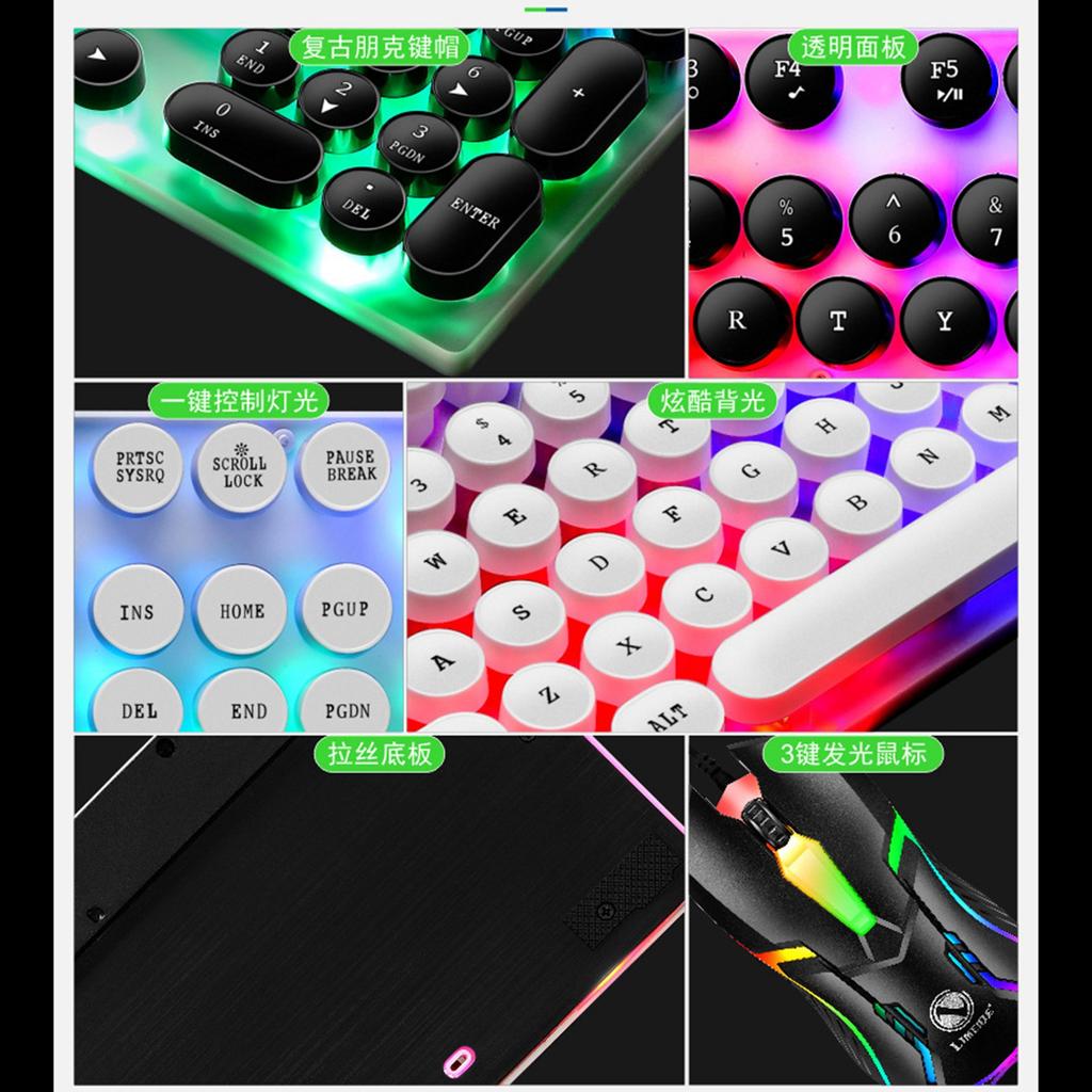 Tastatur Maus Combo Punk Retro Tastenkappen USB Kabelgebunden Bunt Hintergrundbeleuchtet Langlebiges ABS Tastatur und Maus für Gaming Laptop PC