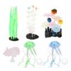 6 Stück Leuchtende Aquariumdekorationen Simulation Silikon Seetang Silberner Lotus Lotusblatt Feder Koralle Quallen Ornamente