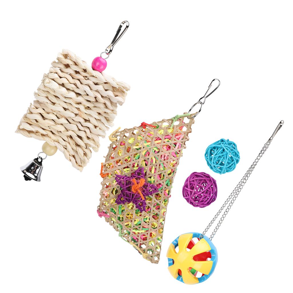 5pcs Foraging Toys Colorful Shred Bell Ball Basket Chewing for Pet Chicken Parrot Bird
