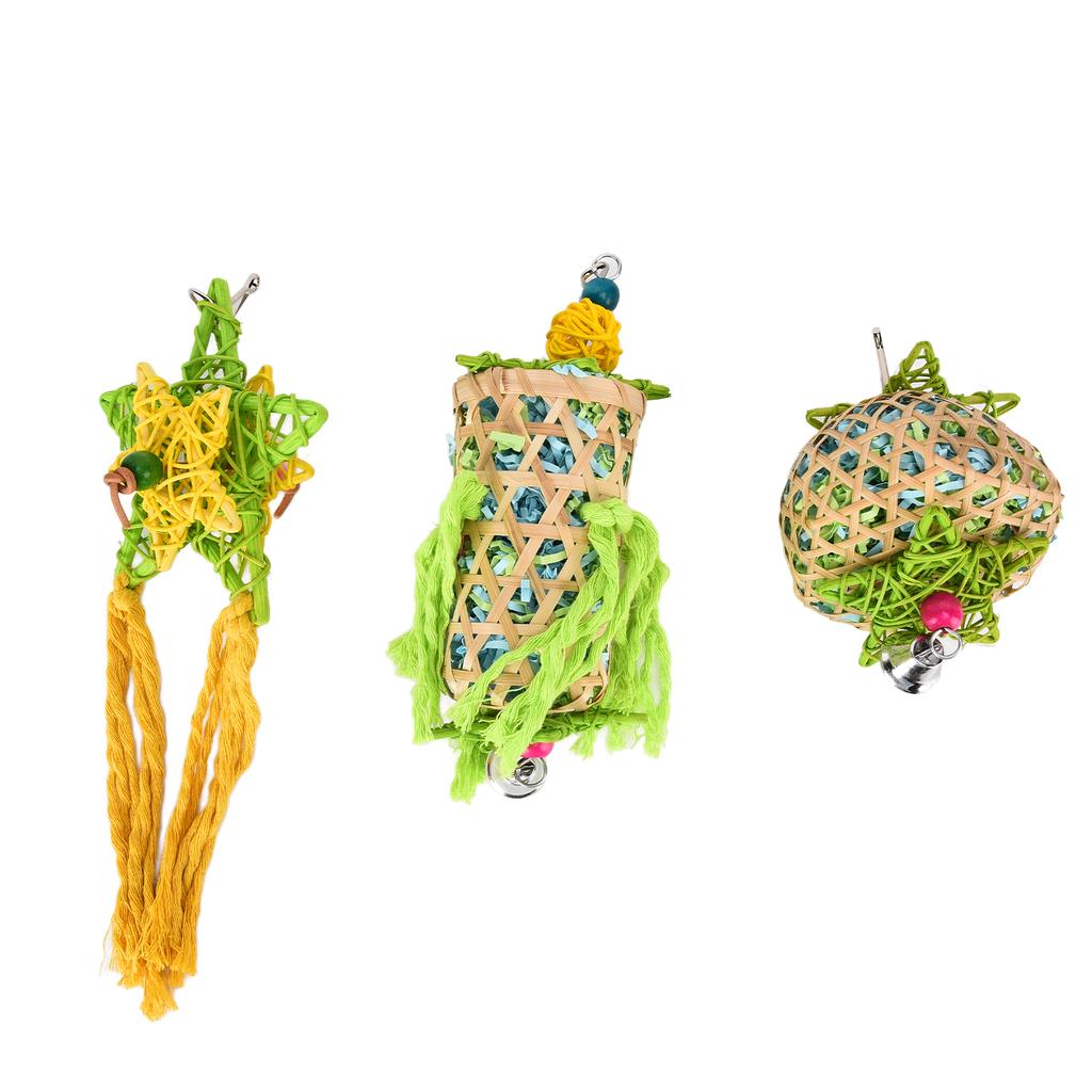 3pcs Bird Chewing Toys Natural Parrot Shredder Toy Set with Bells Rattan Ball for Budgies African Grey Parrot Cockatiels