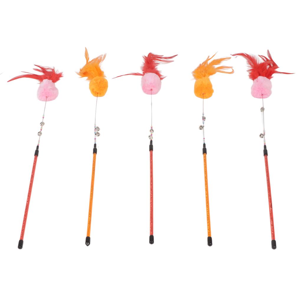 5 Stück Lustiger Katzenstab Ergonomisches Interaktives Katzenfeder-Spielzeug mit Glöckchenperlen für Katzen-Bewegung und Spiel