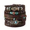 Leather Bracelets Set: Package contains classic leather braided bracelets, including black leather bracelets, wooden beads bracelets, hemp cords bracelets, life of tree pendent bracelets, and ethnic tribal bracelets.