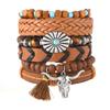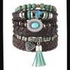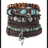 Leather Bracelets for Men Women Handmade Wrap Woven Cuff Bracelets Wooden Beaded Bracelets Vintage Ethnic Tribal Wristbands Bracelet Set Adjustable
