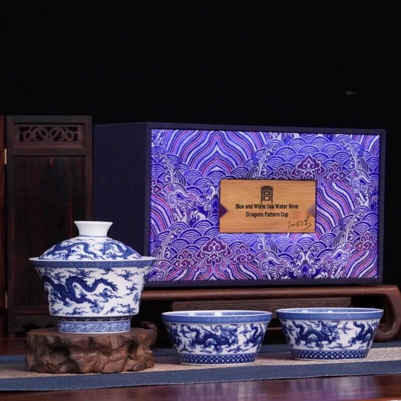 Gong Li Blue & White Nine Dragon Tea Set
