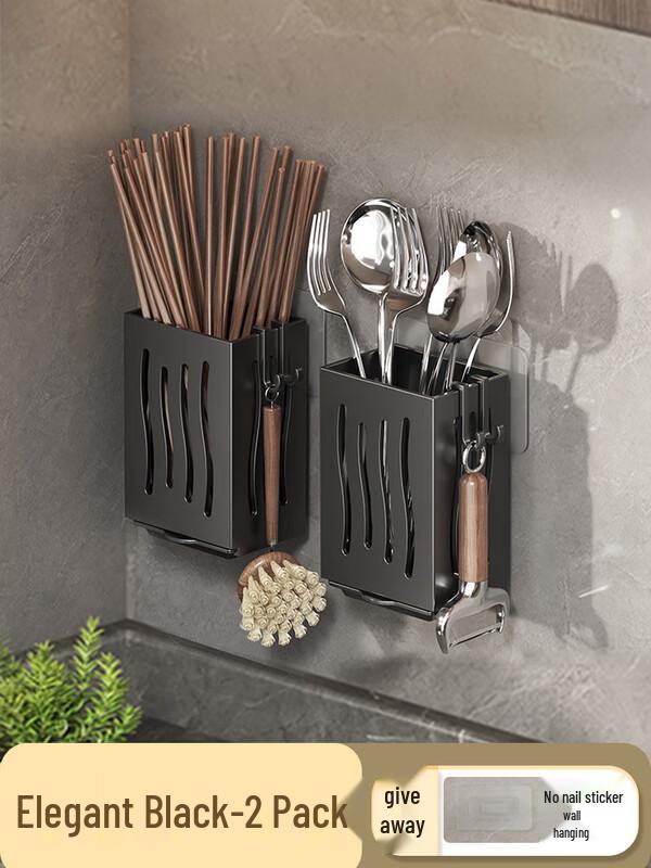 Wall-Mounted Chopstick Holder with Drip Tray (2-Pack)