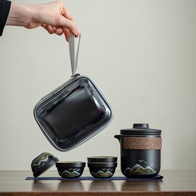 Reise-Teeset Outdoor-Camping Tragbares Teeset Schwarze Keramik Kuaike-Tasse Eine Kanne Vier Tassen Aufbewahrungstasche Geschäftsgeschenke