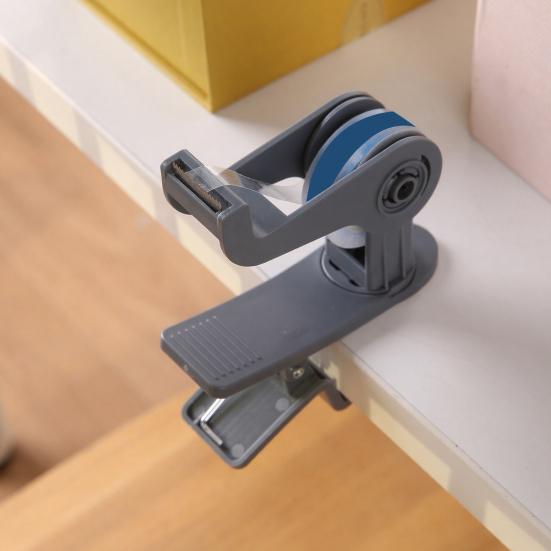 Praktisches Clip-Design für sichere Platzierung. Ausgestattet mit einem praktischen Clip, kann dieser Spender einfach an der Ecke jedes Tisches oder Schreibtisches befestigt werden.. Diese Funktion hält das Klebeband in Reichweite und verhindert, dass es während der Verwendung verrutscht oder herunterfällt, was die Organisation des Arbeitsbereichs verbessert.