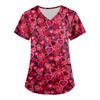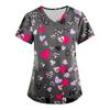 Modische Arbeitskleidung für Damen mit V-Ausschnitt, kurzen Ärmeln und bedruckten Taschen