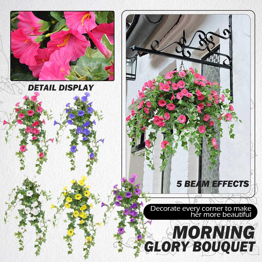 24 Bündel künstliche Prunkwinden, UV-beständige Kunstblumen für den Außenbereich, zum Aufhängen von Blumentöpfen und als Fensterdekoration für drinnen und draußen