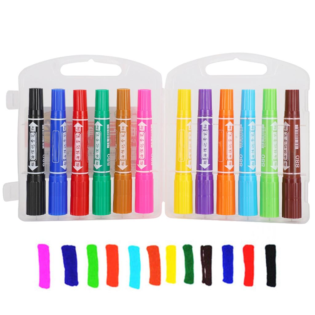 Doppelspitzen-Ölmarker Kinder Handgezeichneter Hakenstift Kinder Schreib-Malwerkzeug Künstlerbedarf(880 12 Farben )