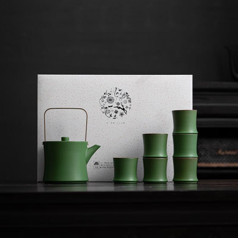 Ailan Huijia Green Bamboo Ceramic Teapot Set