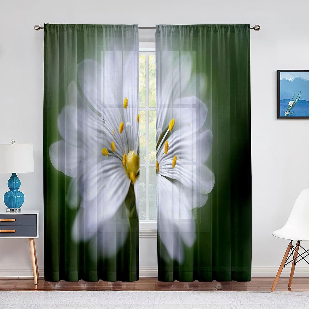 Weiße Blütenstaubgefäße Nahaufnahme Transparenter Voile Vorhang Fensterdekoration für Wohnzimmer Schlafzimmer Dekor Vorhänge Chiffon Tüll Vorhang