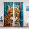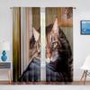 Niedliche Katze Aquarellmalerei Kunst Floral Transparente Voile-Vorhänge für Schlafzimmer Küche Tüll-Fenstervorhänge für Wohnzimmer Vorhänge