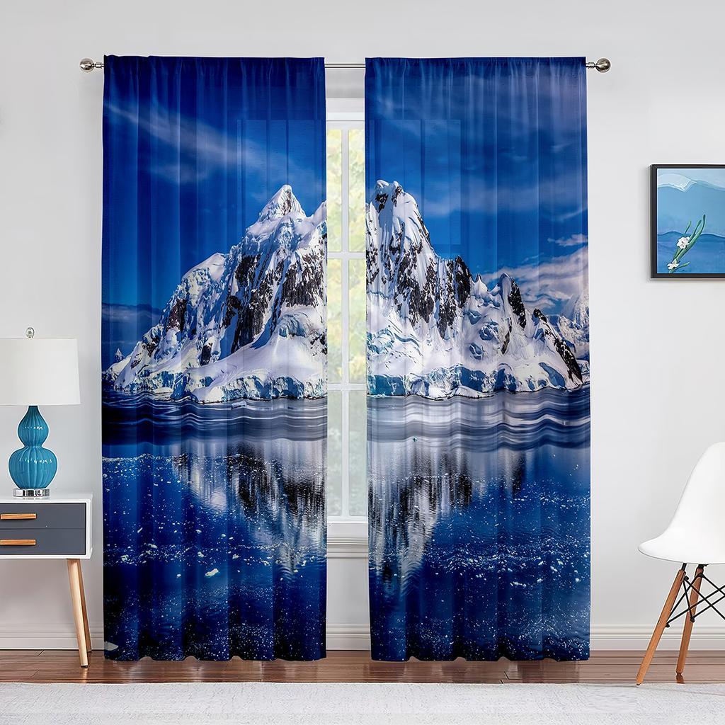 Schneeberg Eisberg Nördlicher Antarktischer See Chiffon Transparente Vorhänge für Wohnzimmer Schlafzimmer Dekor Fenster Voiles Tüllvorhang