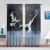 Mandschurenkranich, der die rote Sonne fliegt, Tüllvorhang für Wohnzimmer, Schlafzimmer, Dekor, transparente Vorhänge, Zimmer, Küche, Fensterbehandlung