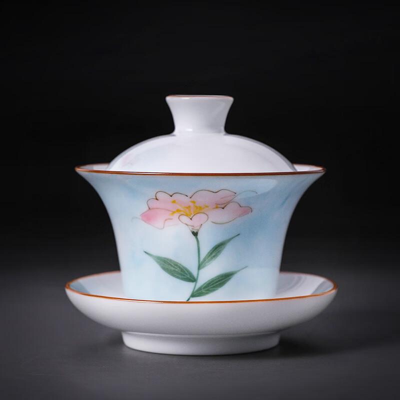 Hand-painted Dehua White Porcelain Sancai Gaiwan Tea Set