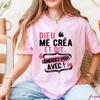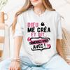 T-Shirts für Damen Lässiges Rundhals-T-Shirt mit französischem Zitat "Dieu Me C'est Mon Saint" - Verspielter Buchstabenprint Kurzarm-Oberteil