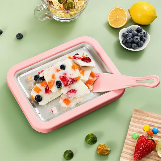 Erleben Sie hausgemachte Leckereien mit diesem gebratenen Joghurtbereiter, gefertigt aus lebensmittelechtem Edelstahl und strapazierfähigem Kunststoff für Sicherheit und Langlebigkeit.. Seine innovativen Kühlplatten halten die Zutatentemperatur länger aufrecht und ermöglichen so mehrere Eiscreme-Chargen ohne Unterbrechung..