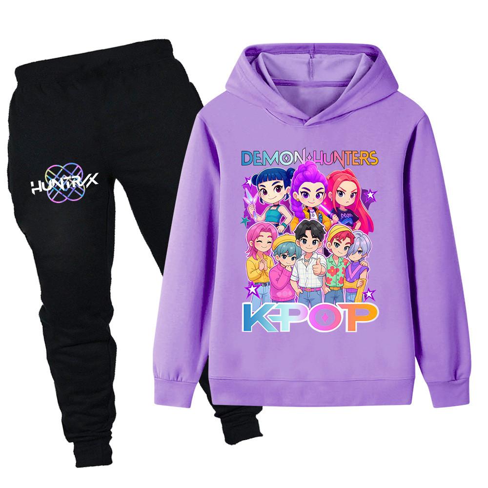 PB1201 Kinder Jungen Mädchen Kpop Mira Zoey Rumi Sajaboys Print Langarm Kapuzenpullover Hose Hosen Kleidung Sets