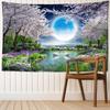 Mondlicht Nachtansicht Blumen und Vogel Malerei Wandteppich Hängen Böhmischen Pfirsichblüte Ästhetik Zimmer Home Decor