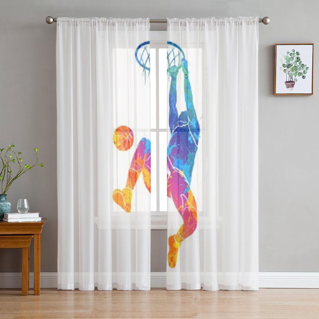 Basketballspieler Ball Tüll Transparente Vorhänge für Wohnzimmer das Zimmer Schlafzimmer Küchendekoration Voile Organza Vorhänge