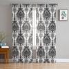 Blumen-Schwarz-Weiß-Gardinen für Wohnzimmer, transparenter Tüll, Fensterbehandlungen, Schlafzimmer, Küche, Heimdekoration, Schleier, Vorhänge