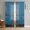 Paris Frankreich Stadtbild mit Eiffelturm Sonnenuntergang Chiffon transparente Vorhänge für Wohnzimmer Schlafzimmer Fenster Voiles Tüll Vorhang