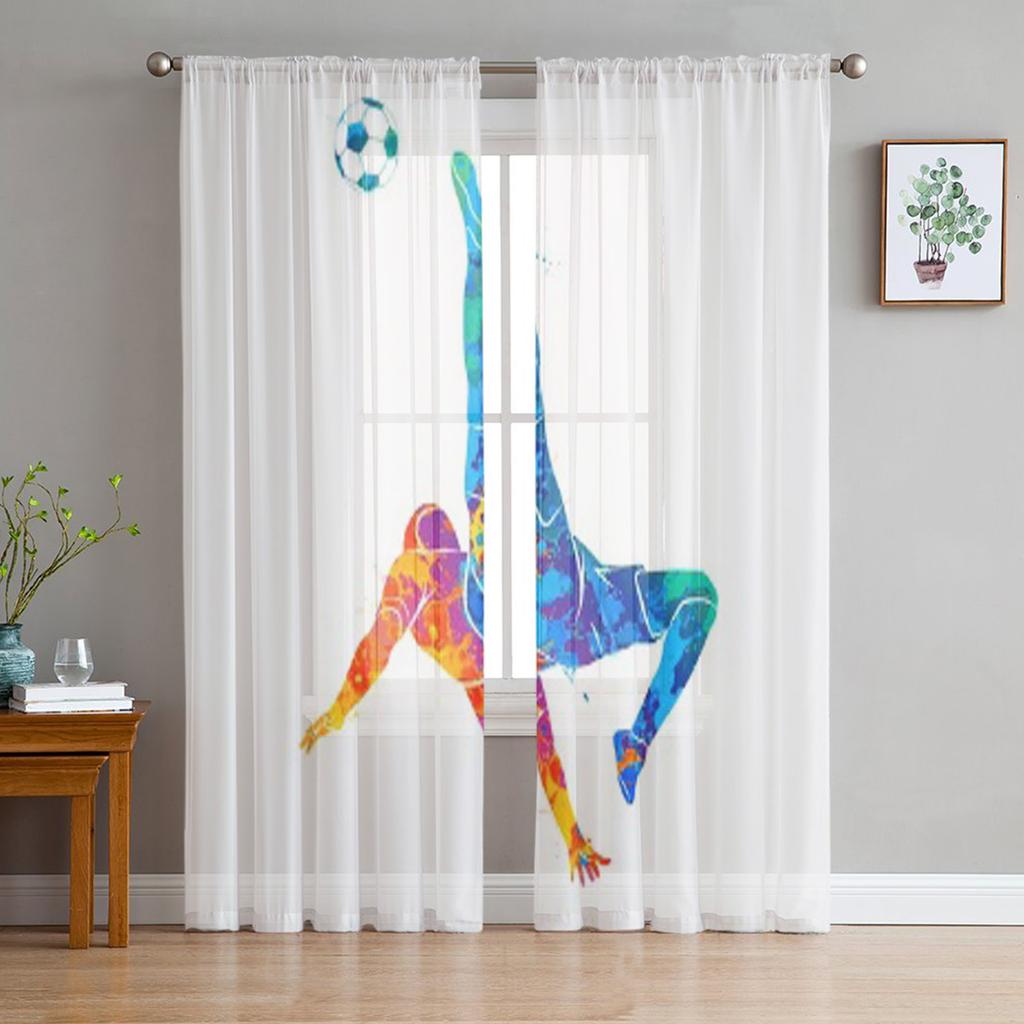 Ball Fußballspieler Tüll Gardinen für Wohnzimmer Dekoration Vorhang für das Zimmer Schlafzimmer Küche Voile Organza Vorhänge