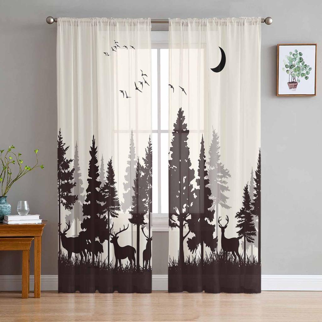 Wald Silhouette Hirsch Tier Mond Fenster Tüll Vorhänge für Wohnzimmer Schlafzimmer Hotel Luxus Dekoration Gardinen