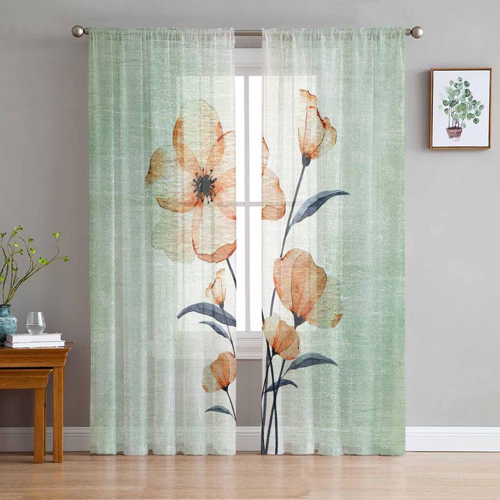 Blumen-Tüll-Fenstervorhänge im dekadenten Stil für Schlafzimmer, luxuriöse Wohndekoration, Vorhänge im Wohnzimmer, Chiffon-Paneele