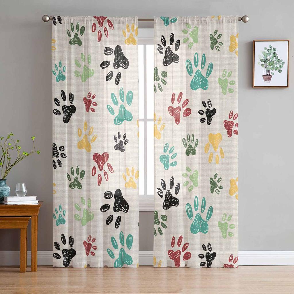 Tierfußabdrücke Graffiti Leinenstoff Fenstertüll Vorhänge für Wohnzimmer Schlafzimmer Hotel Luxus Dekoration Transparente Vorhänge