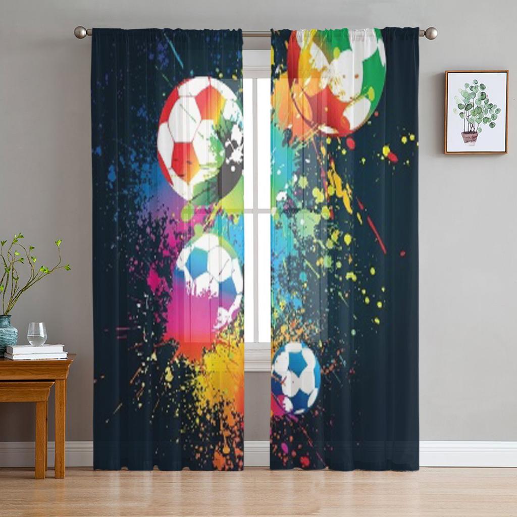 Bunte Fußbälle Luxuriöse Chiffon Sheer Vorhänge für Wohnzimmer Schlafzimmer Dekoration Fenster Voiles Tüllvorhang
