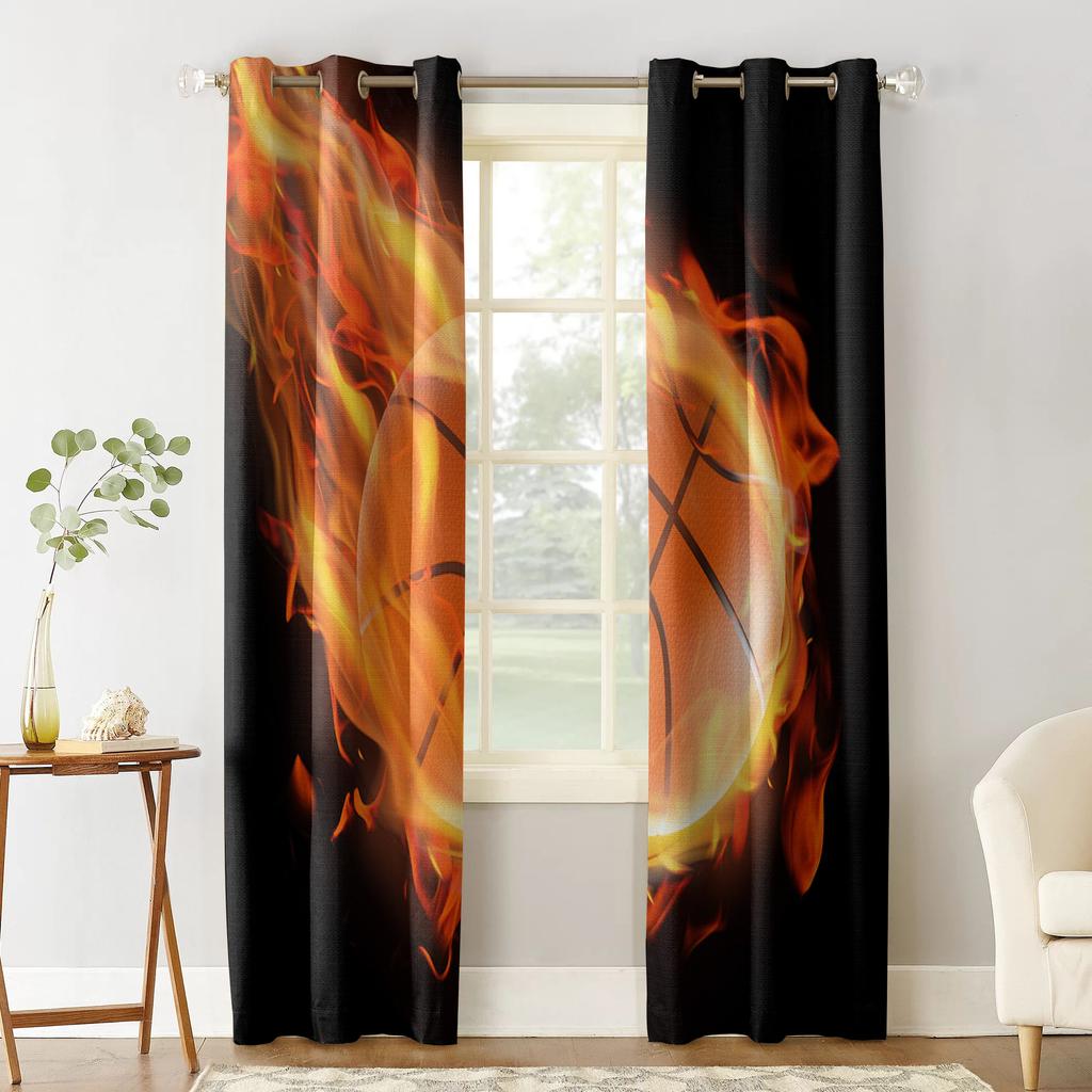 Basketball Flamme Fenster Vorhang Heimdeko Vorhänge für Wohnzimmer Schlafzimmer Küche Türvorhang