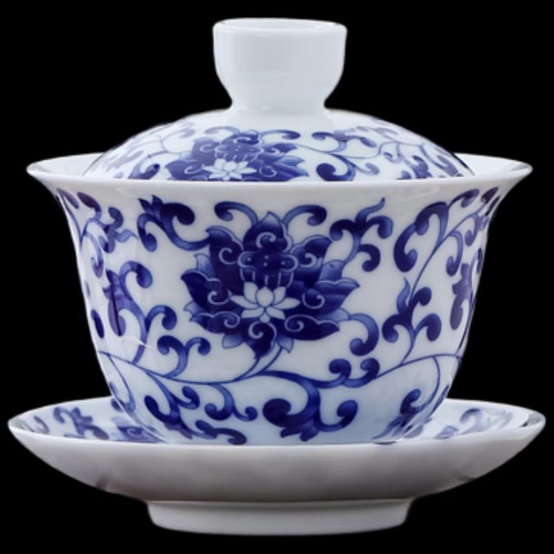 Shangqi Blue & White Porcelain Lotus Gaiwan