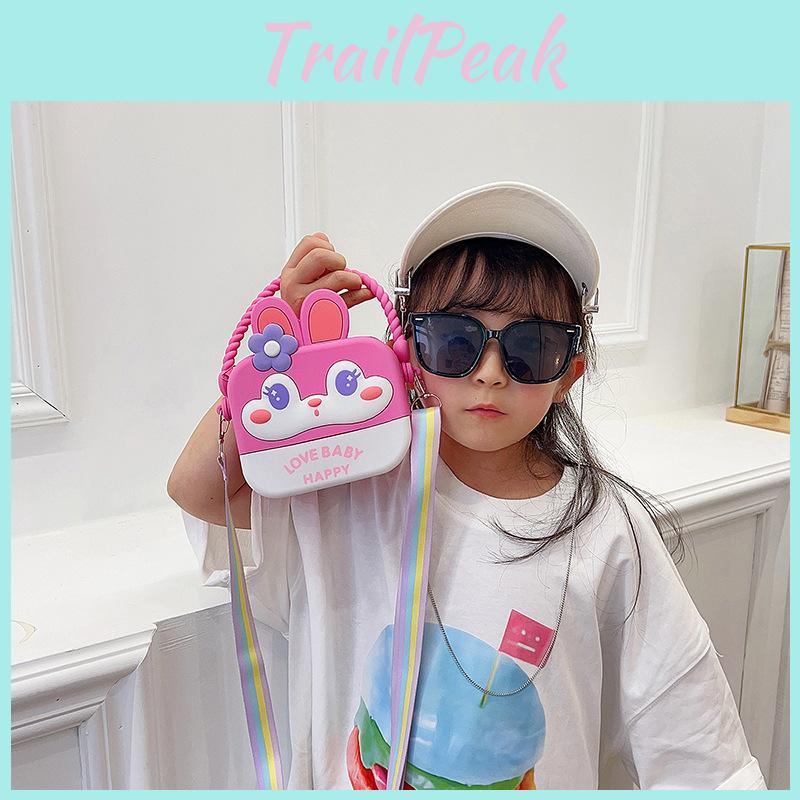 Entzückender Regenbogen-Cartoon-Silikon-Kinderrucksack mit 3D-Kaninchenlächeln und stilvollem Design