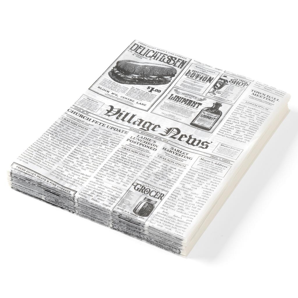 Pergamentpapier für warme Snacks, Zeitungsdruck, 200x250mm, 500 Stück, Hendi 678121
