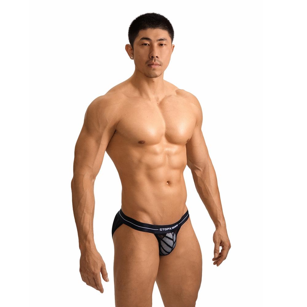 Men's Striped Ice Silk Mesh Briefs: Low Waist, Breathable, U-Convex, Thin, Sexy Summer Underwear.