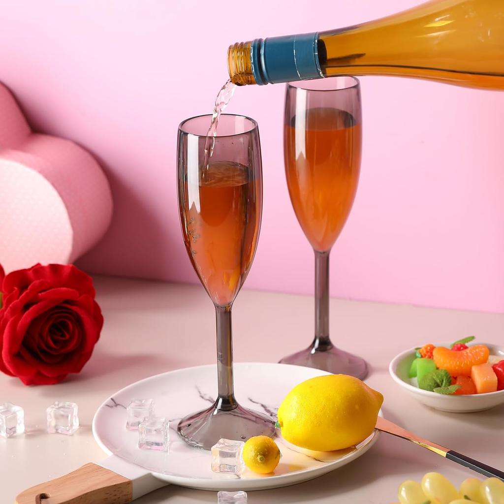 40 Pcs 6 oz Champagne Flutes Bulk, Translucent Black Acrylic High Stem Wine Glasses for Wedding, Birthday, Christmas Party